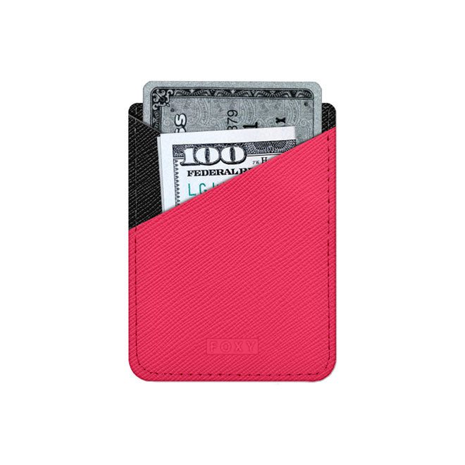 Billetera adhesiva universal, fabricado con cuero saffiano sintético 100% eco-friendly y vegano. Protección antirrobo RFID de datos.