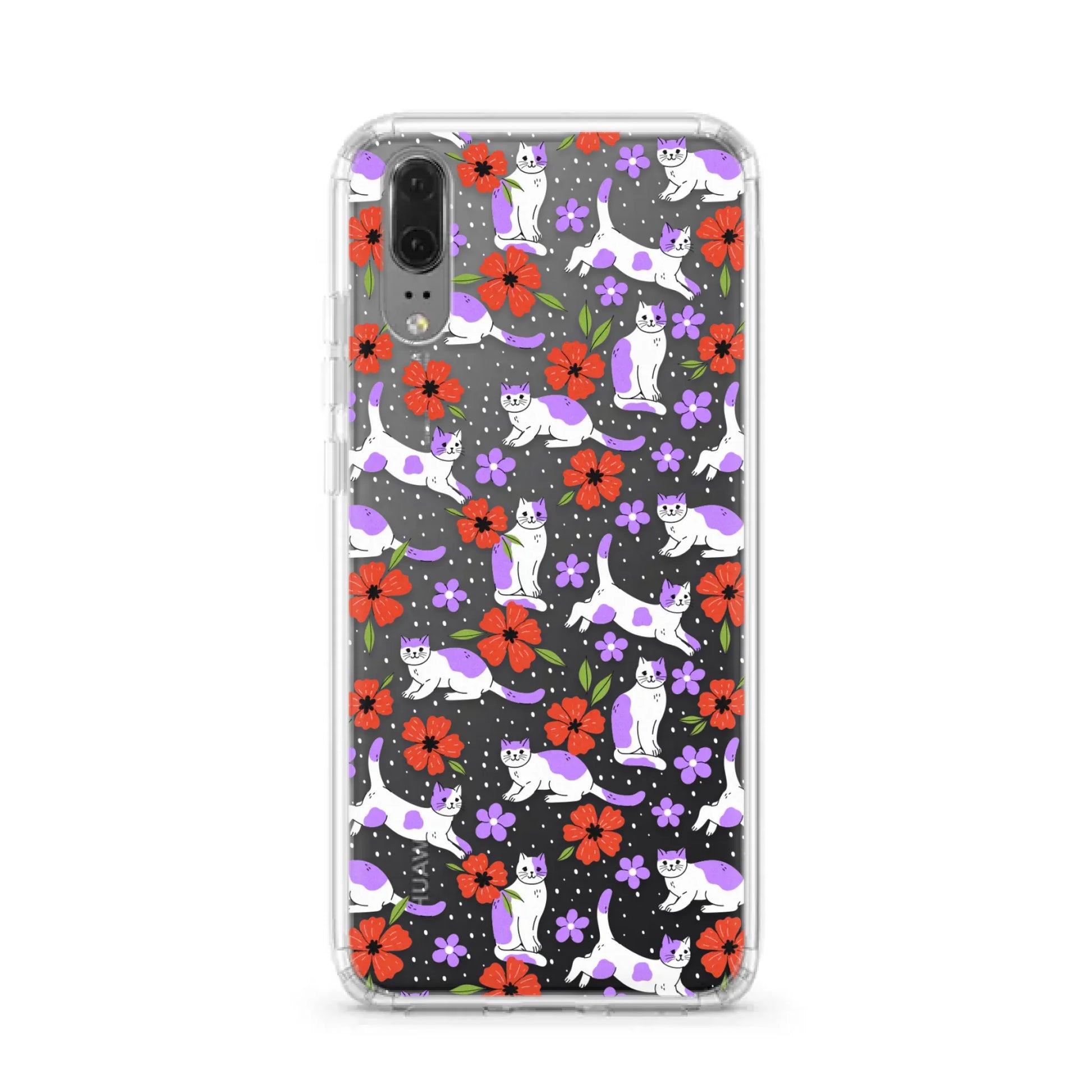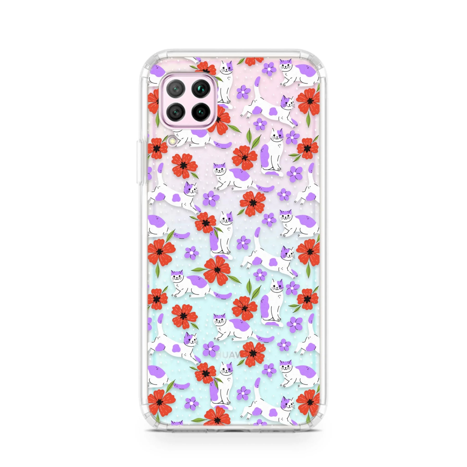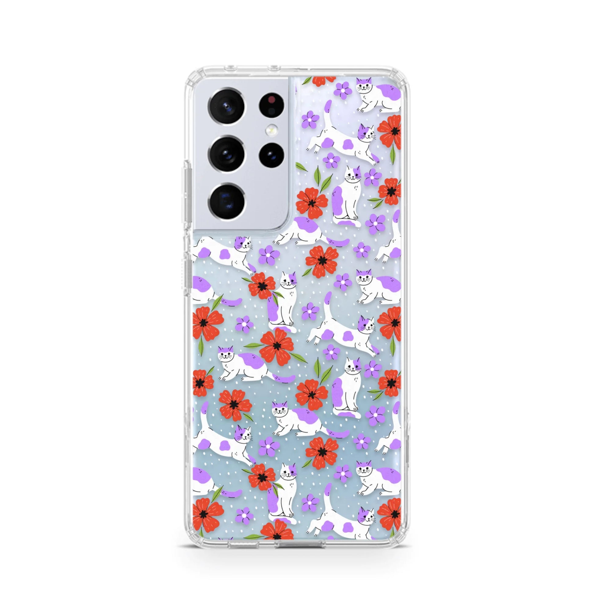 Red Flowers Cute Cats
